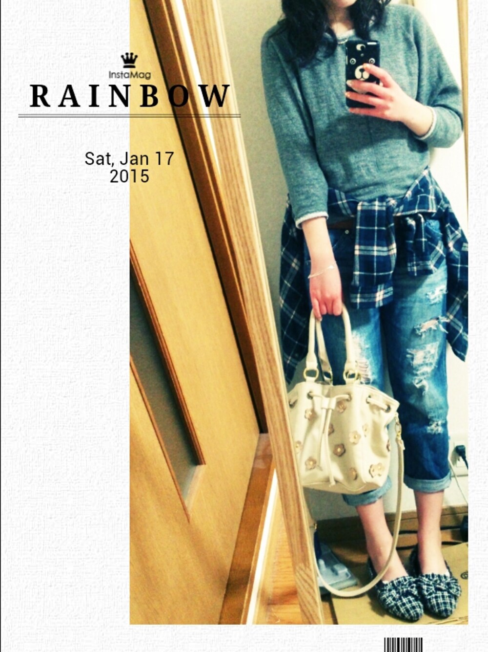 ガーリーなコーデも大好きだけど、 カジュアルなデニムも大好き!! でもどこかに女性らしさをプラス。 今日は足首を見せたのと、 バッグをかわいく ♡ デニムはユニクロのやつに 自分でダメージいれました(笑)