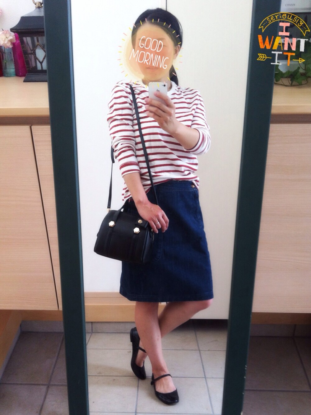 赤×白ボーダーに黒小物を効かせて、パリジェンヌ風。