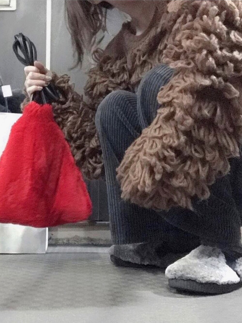 ❁*。 お気に入りのループニット🦊 1枚で様になります🇱🇰 ❁*。 ファー巾着は 去年の sense of placeのものです🔺🔺🔺