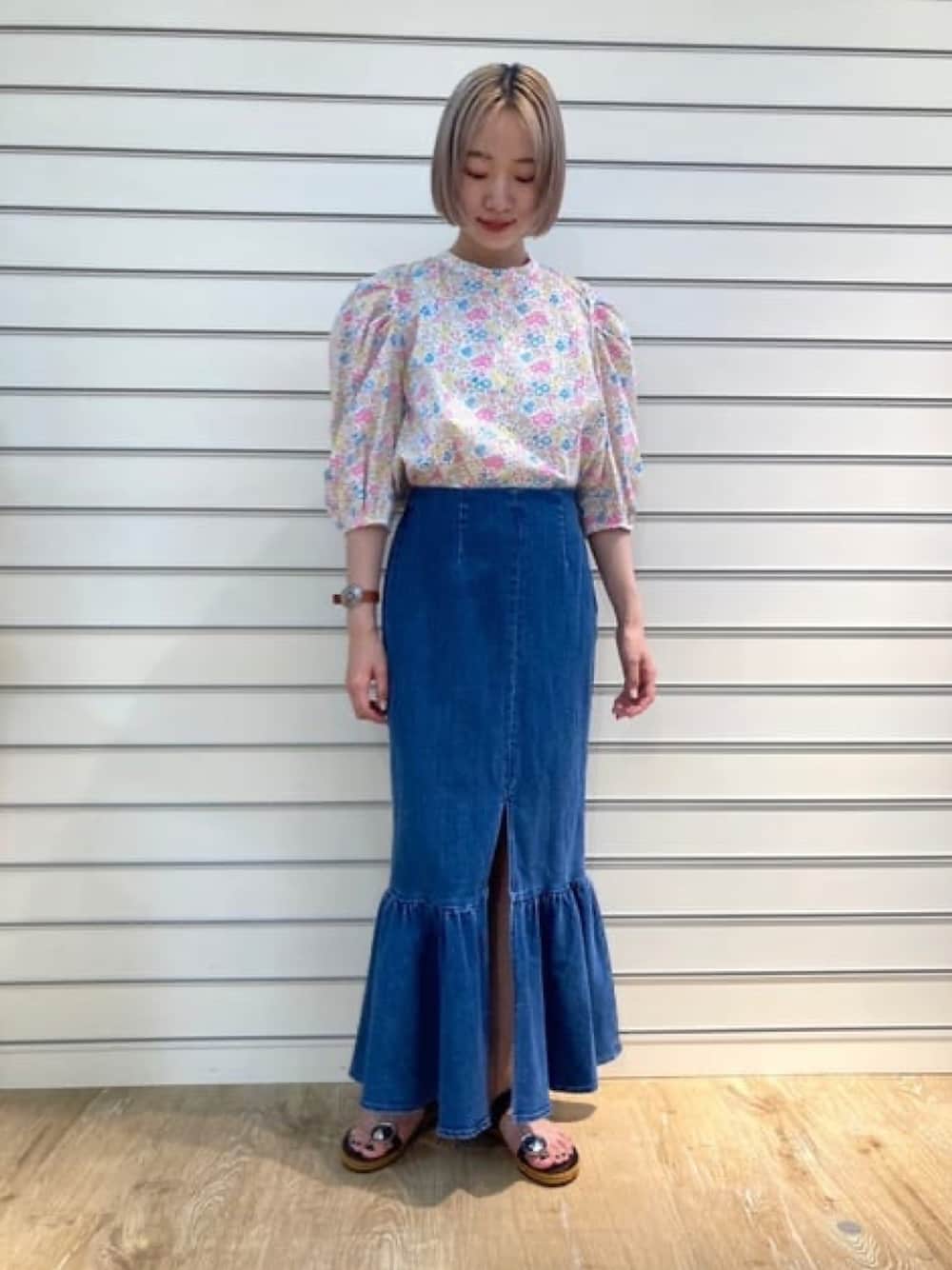 Rie Millerのシャツ/ブラウス「リバティギャザーパフスリーブスタンドカラーブラウス」を使ったコーディネート