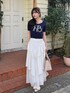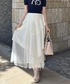 riendaofficial(rienda official)のスカート「チュールレイヤードラッフルジャストウエストスカート 春服」を使ったコーディネート
