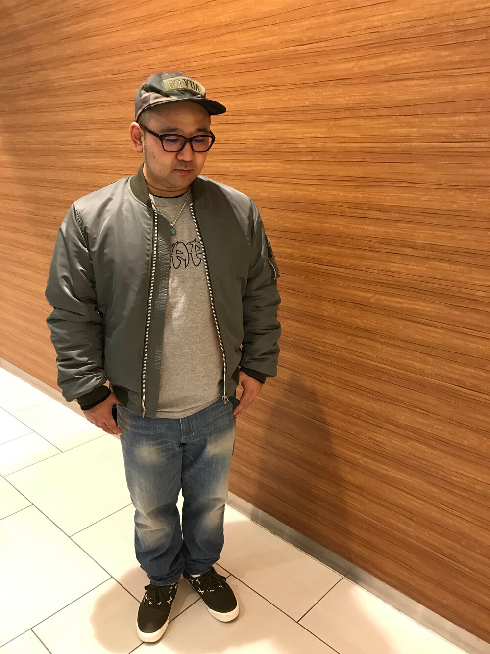 続きまして旦那ちゃんコーデ♡ 暑がりな旦那ちゃんにMA-1はまだ早かったみたいw いきなりステーキ食べてご満悦です♡w