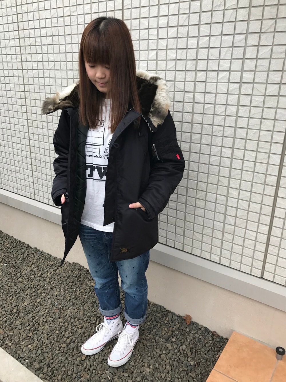これから旦那ちゃんとお買い物デート♡ WTAPSのN3Bは今季の一番高いお買い物☠︎ かっこいい♡ もう何も買いません!買えません! 今年の冬は寒そうだけど、この子で乗り切るー♡ 小窓に旦那ちゃんコーデも載せてます✩