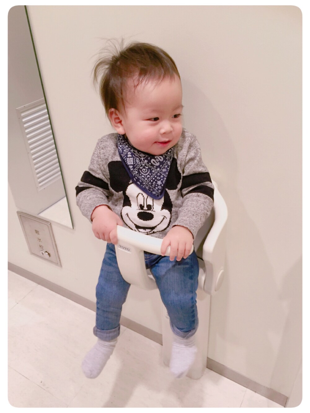 RIIE☺︎のニット/セーター「Babygap | Disney Baby Mickey Mouse マールセーター」を使ったコーディネート