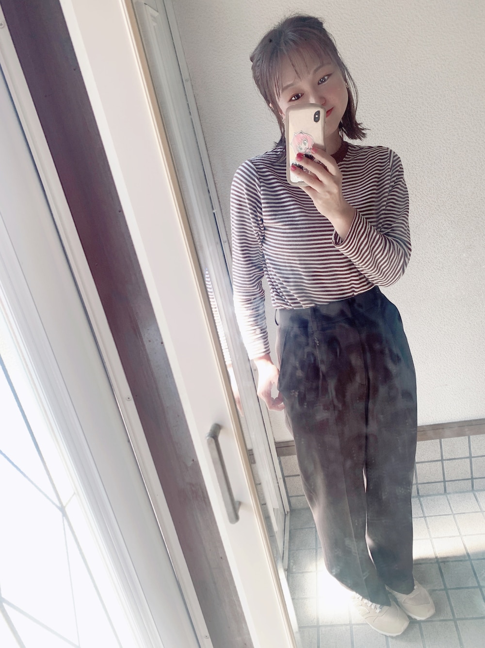 着用コーデ:7件りのTシャツ/カットソー「リンガーボーダーロングTシャツ」を使ったコーディネート