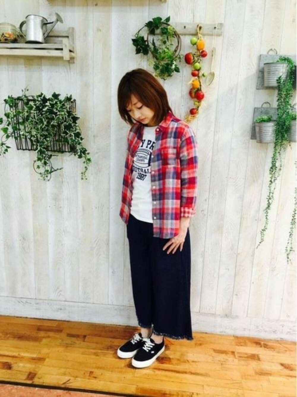 暖かくなってきたのでシャツ×デニムの 春らしいコーディネート♪ 夜など肌寒い時は、ブルゾンやMA-1を羽織っても可愛いです♪