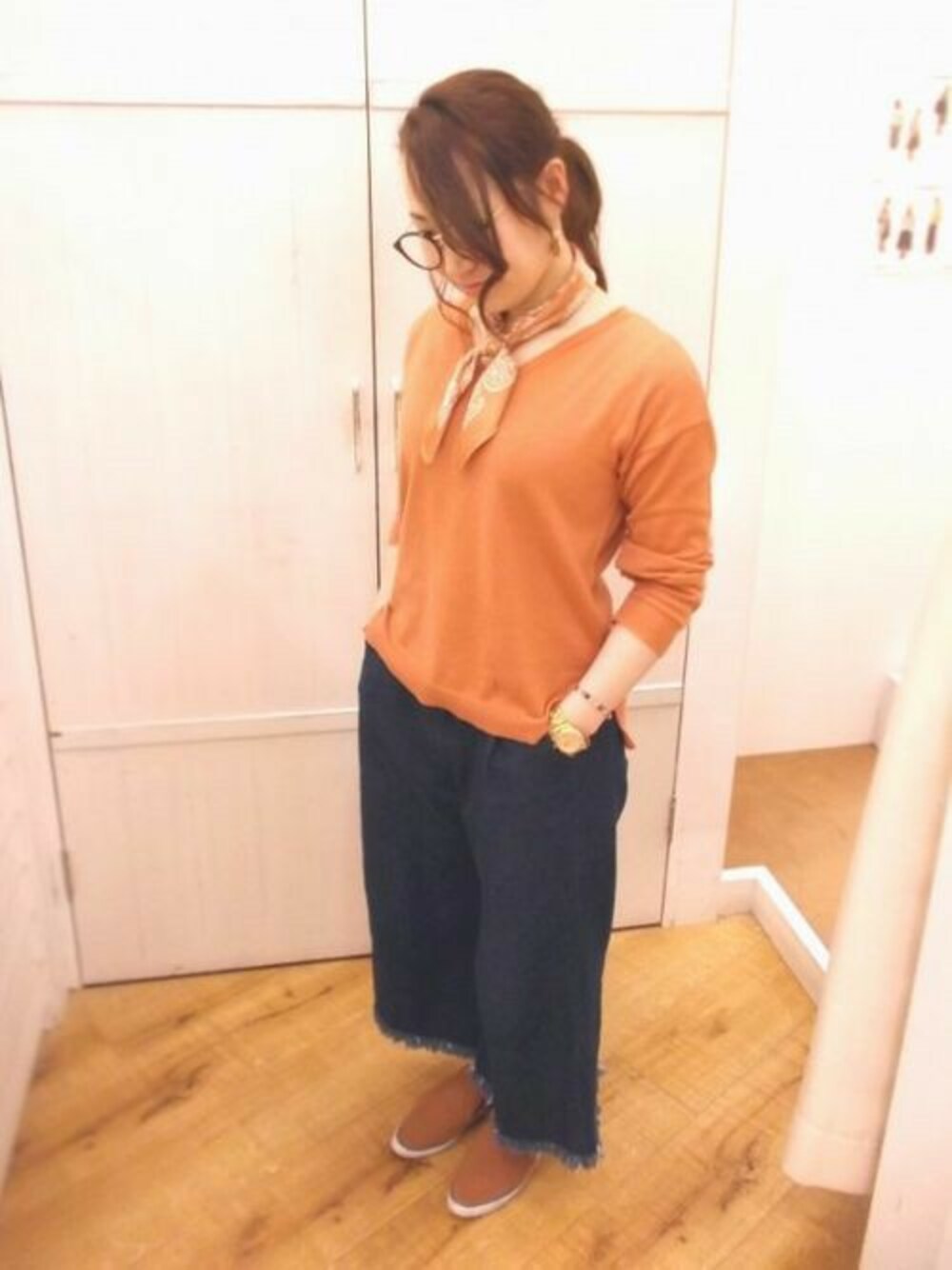 chimeスタッフのデニムパンツ「【CHIME】デニムロングガウチョパンツ」を使ったコーディネート