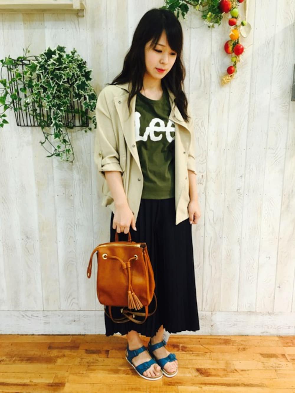 大人気のLEEのデカロゴTシャツ! 人気のプリーツガウチョに合わせ、おすすめのスタイル!