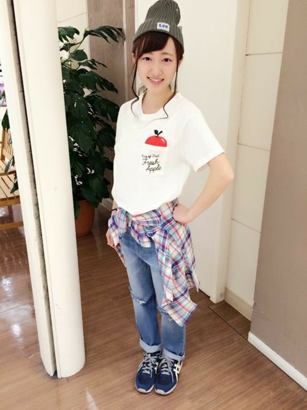 chimeスタッフのTシャツ/カットソー「【CHIME】りんごポケットTシャツ」を使ったコーディネート