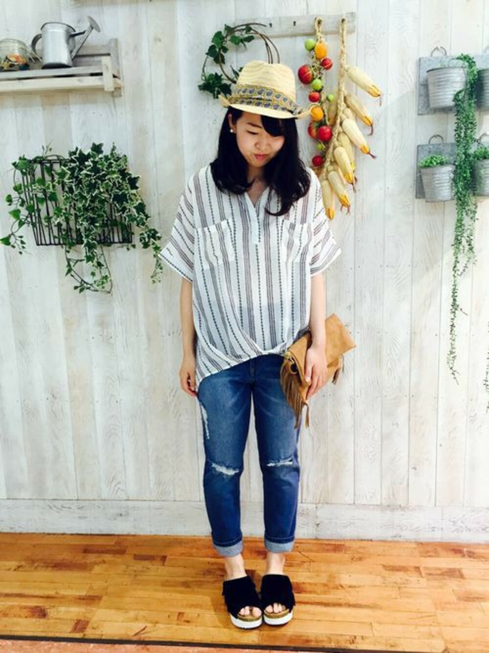ドレープシャツにデニムを合わせた 大人のSUMMERカジュアルコーデ☆