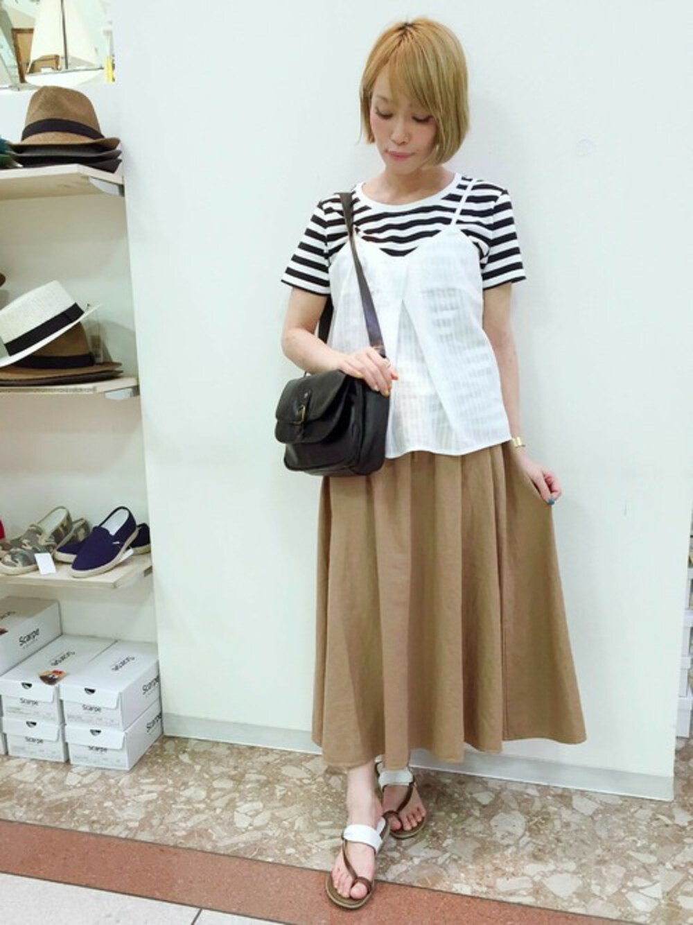 今年トレンドのキャミソールは、ホワイトで夏らしく(*´꒳`*)ボーダーTシャツでカジュアルダウンた¨̮♡︎ 甘くなりすぎない女子っぽいコーデに♫