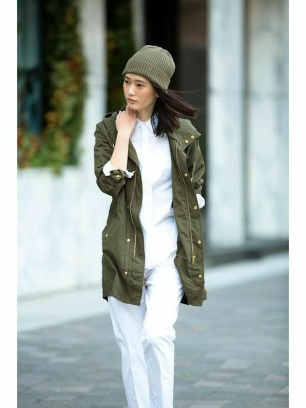 カーキとホワイトで春コーデ♪ 秋冬から継続して人気のカーキ。 少しきれい目のミリタリーアウターなら、カジュアルになり過ぎないコーディネイトが楽しめます。