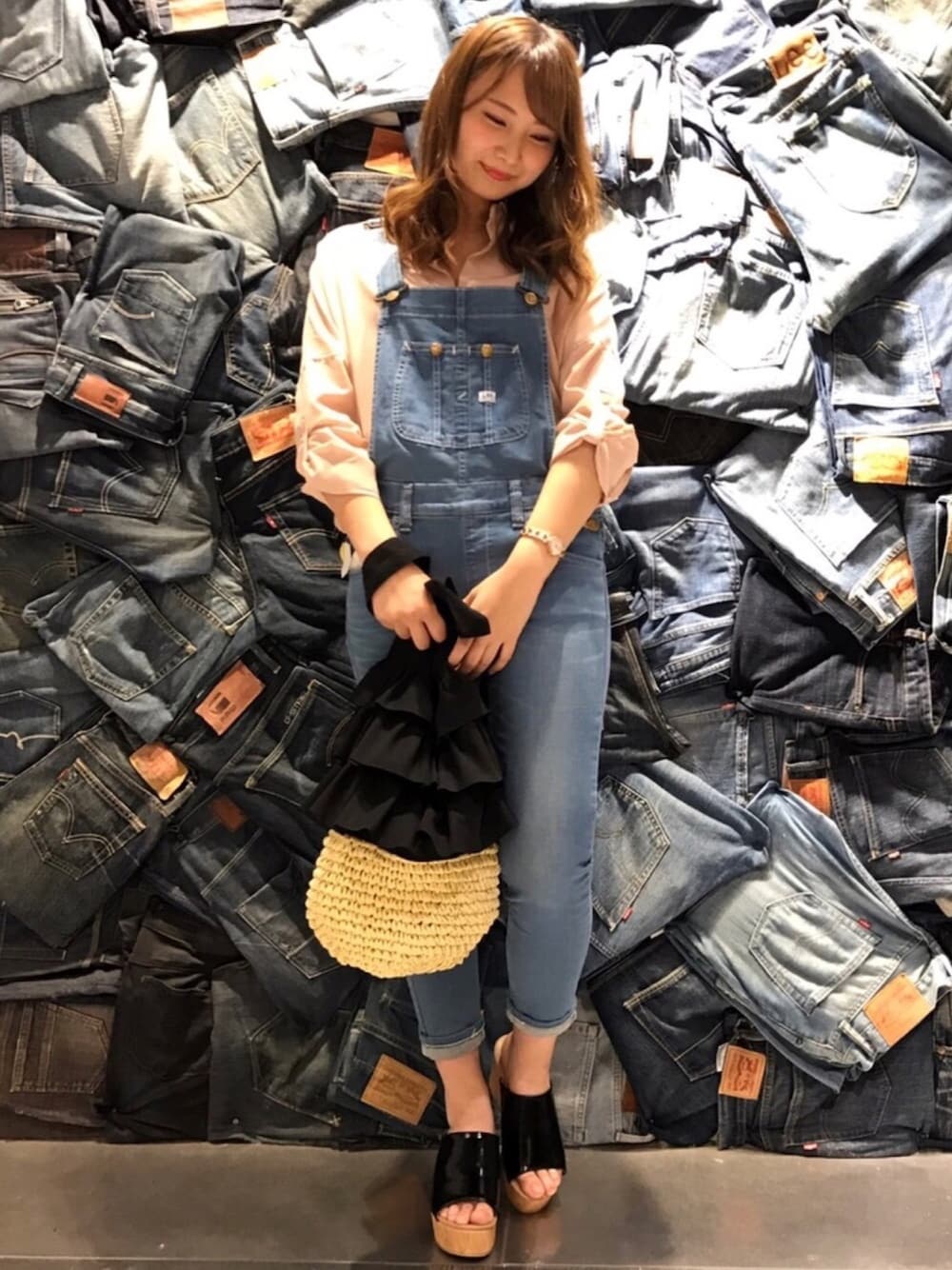 #上野 ライトオン別注Leeのオーバーオールです😆 スキニータイプでストレッチも効いています👌🏻 ピンクのトップスと合わせて 定番アイテムにトレンド感をプラス😌 Instagram ☞ ro_tokyo