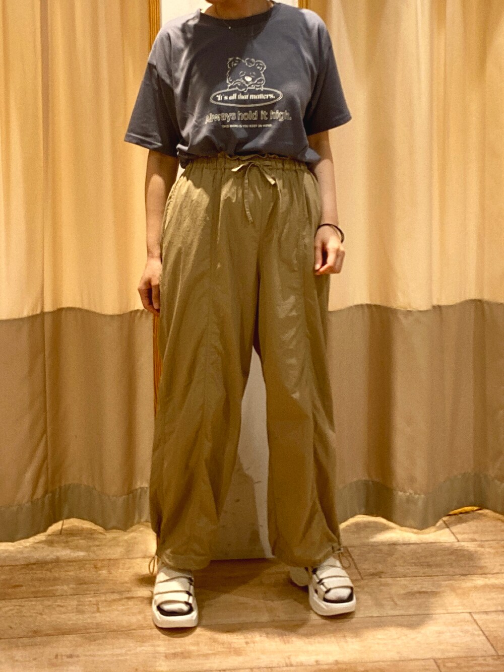 くまちゃんのプリントがかわいいTシャツが主役のコーデです。 くまちゃんのプリントはかわいいですがビッグシルエットでゆったりとカジュアルに着ていただけます。 B.L.U.E.宇都宮福田屋店ではただいまクリアランスセールを開催中です。 ぜひこのご機会にご来店くださいませ!