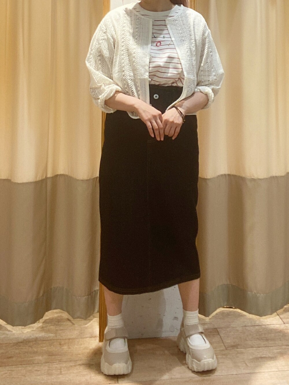 りのTシャツ/カットソー「ボーダー刺繍Tシャツ」を使ったコーディネート