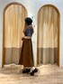 リボンサス付きスカートはギャザーが入っているので腰周りをカバーしてくれます。 後ろから見たシルエットも膨らまずきれいです。