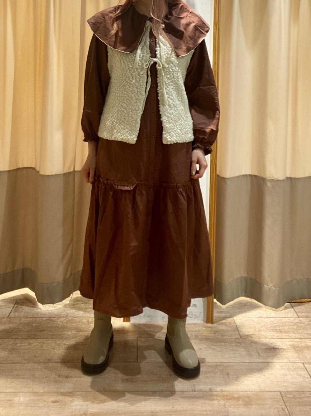ふわふわのベストがかわいい秋らしい色みでまとめたコーデです。 ただいま宇都宮福田屋店では19日まで限定で2buy10%offのイベントを行なっています。 是非このご機会にご来店くださいませ^^