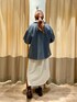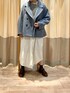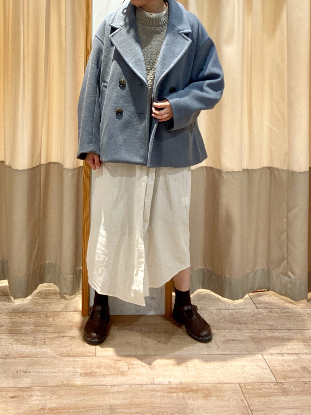コートはくすみがかった落ち着いた色みのブルーなので馴染みがよく色々なコーデに合わせやすいです。