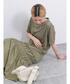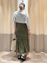 カーキのワンピースは裾のギャザーでシルエットがふわっとするのがかわいいです。1枚で透けずに着られるので涼しいです。