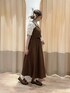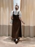 ブラウンのスカートとビスチェはセットアップなので一緒に着るとワンピースっぽく着ていただけます。 厚地過ぎないので今すぐ着れる秋らしいカラーのアイテムです。