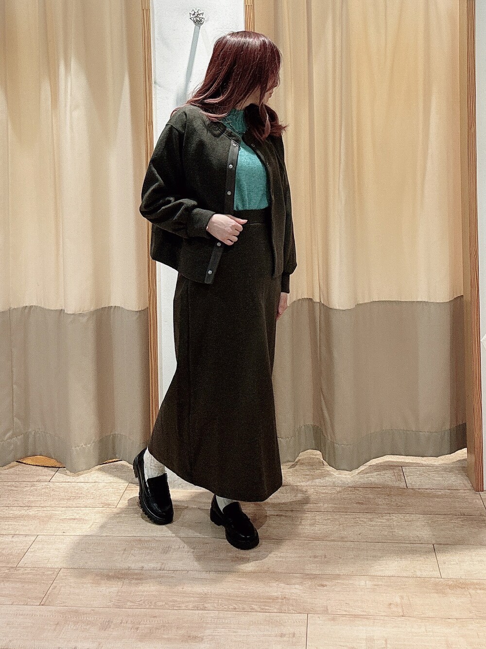ウールライクのシリーズはセットアップで着るのがおすすめです。 トップスは前後着になっているので色々な着こなし方ができます。 現在、お店では先行セールを開催中です! お値下げ品がたくさん追加になりました✨ 是非B.L.U.E.宇都宮福田屋店にお越しくださいませ。