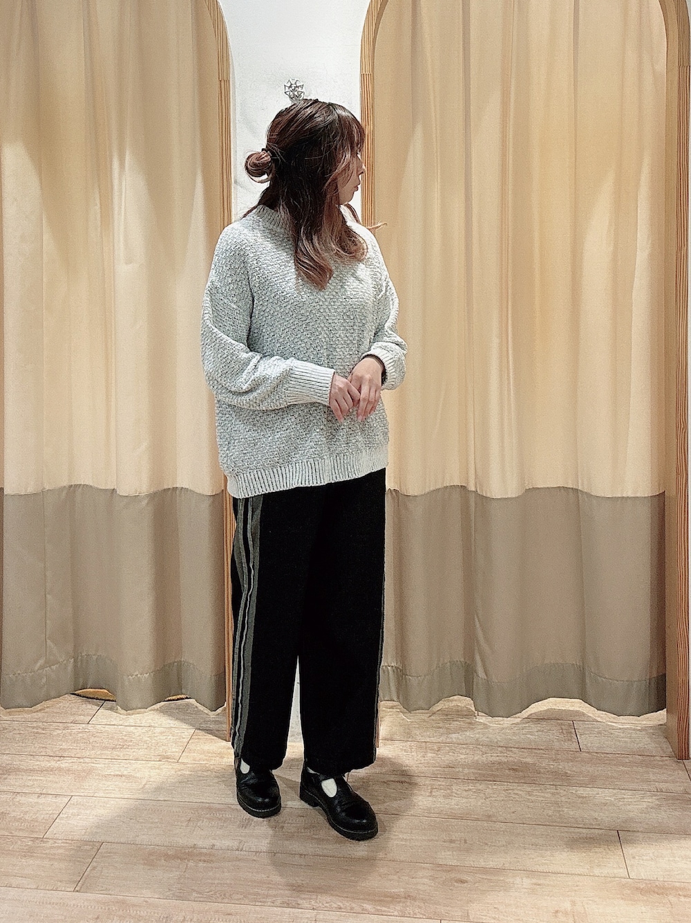 りのニット/セーター「【帯電防止】ミックスモールニットプルオーバー」を使ったコーディネート