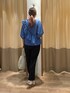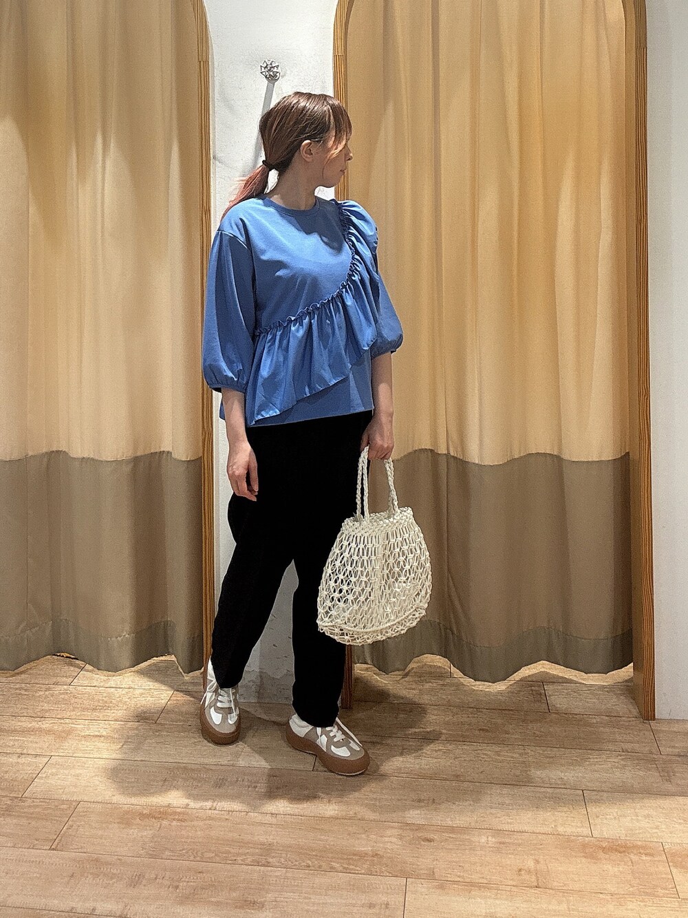 トップスは大きなフリルが特徴的で着るだけでサマになります。今から初夏まで長く活躍してくれる1枚です。