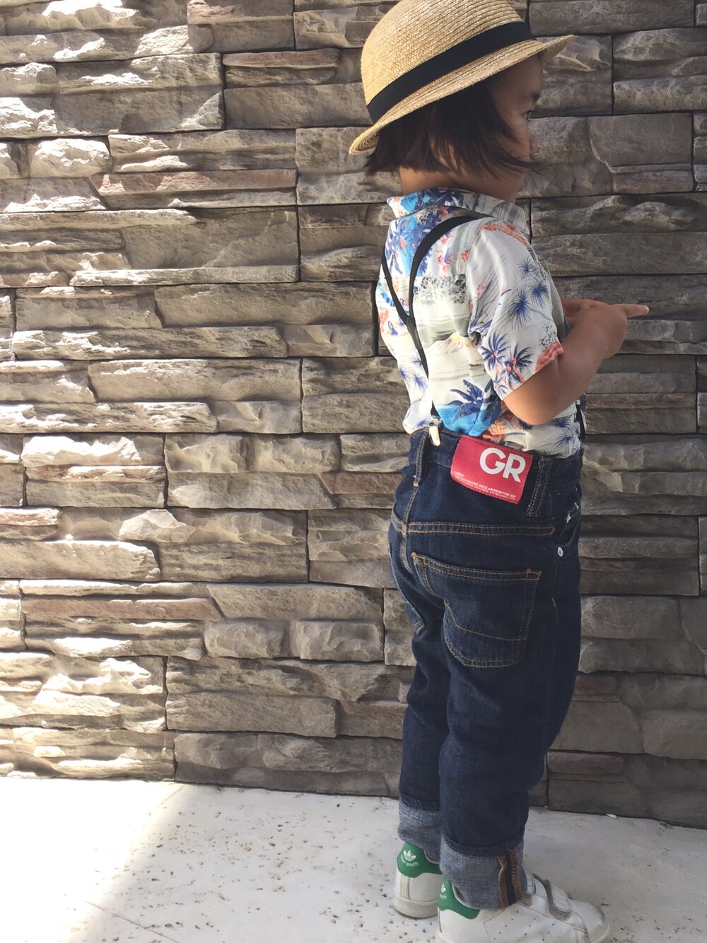 🌺🌺🌺 暑いけど、アロハにはデニムでしょーってことで。 サスペンダーした後ろ姿可愛いなぁ♡