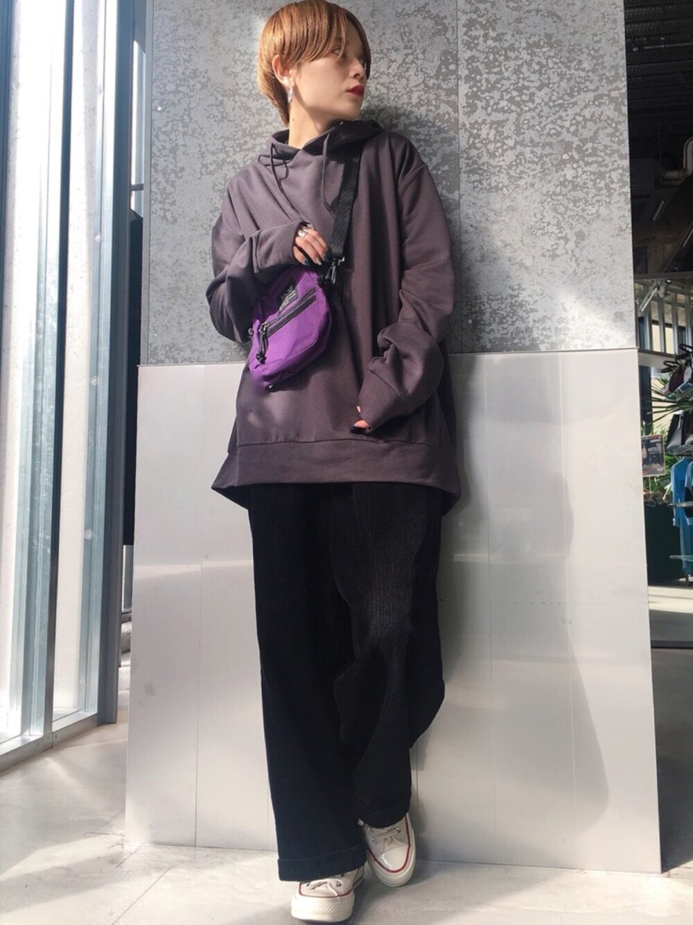 チュニックパーカーで ゆるっとコーデ。 アウターはまだかな? って時にオススメのパーカー。 今の時期だと暖かく感じます。