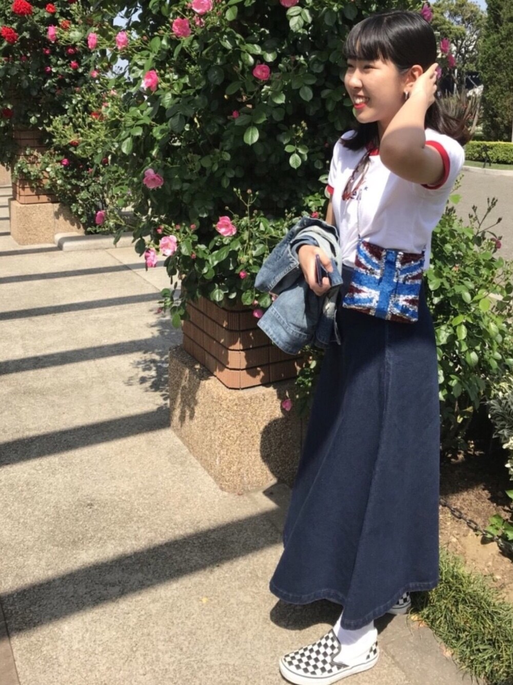 流行りのリンガーTをメインに♥️ カジュアルすぎないようにロングスカートを合わせてカバンと色味をそろえました。