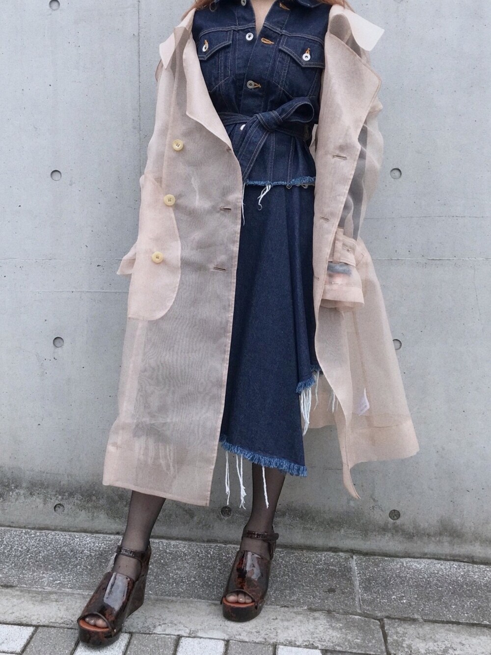 CRY. Riiのトレンチコート「The Petal オーガンジートレンチコート with レザーベルト」を使ったコーディネート
