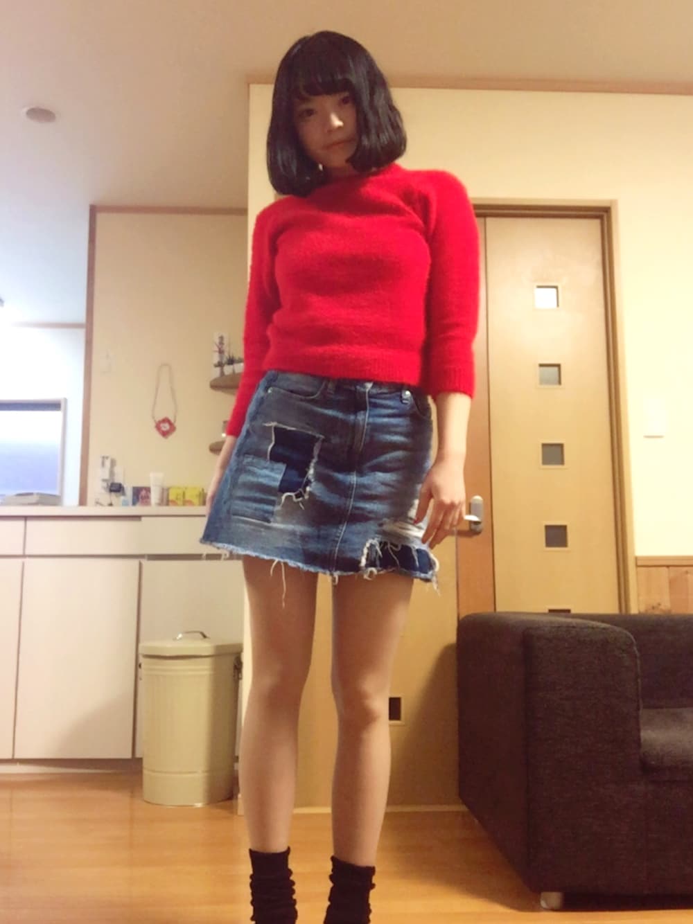 赤ニットは 韓国 で かいました( ⸝⸝⸝ᵕ ̫ ᵕ⸝⸝⸝ )♡ デニムジャケットをはおって 、 デニム オン デニム にするのも かわいくてすきです 。♡