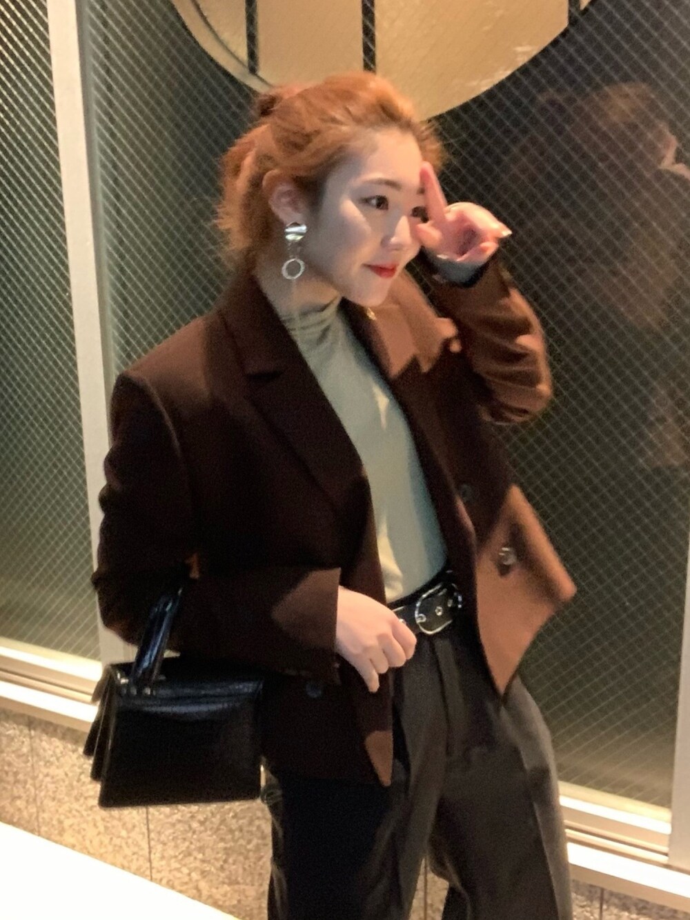 さすがZARA様です👼🏻 ショート丈のジャケットも可愛いよね^^ ブラウンだからすごく使いやすいの。 中のトップスが少し透け感あるから インナーとしても使えるし、一枚でも着れちゃう!グリーンだから差し色になって それも良い🌵