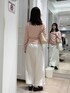 🏷️甘めコーデ トップスは衿周りのドレープデザインがポイントです! 程よいフィット感で、スタイルアップにも◎ オフショルとしても着用ができ、その日の気分やスタイルで着こなしを変えることができます✨ スカートは適度な厚みとツヤのあるサテンにシワ加工をすることで、程良い落ち感があるスカートです! セミフレアシルエットなので、上品な印象を与えてくれます✨ウエストはオールゴム仕様になっていて、生地をバイアスで裁断しているのでやや伸縮性があり楽な着心地です!
