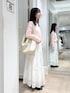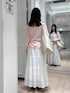 🏷️甘めコーデ トップスはゆるめのサイズ感が体のラインを拾わずに着用でき、汎用性の高いロンTです✨ 暑い季節でもシアー素材になっているので、長袖でもストレスなく着用いただけます🙆🏻♀️ スカートは裾周りの立体的なケミカルレースが映える、華やかなコットンレーススカートです! ボリューム感のあるふんわりとしたティアードシルエットは、切り替え部分にタックデザインが入っています! ウエストはゴム仕様になっており、内紐で調整可能です。