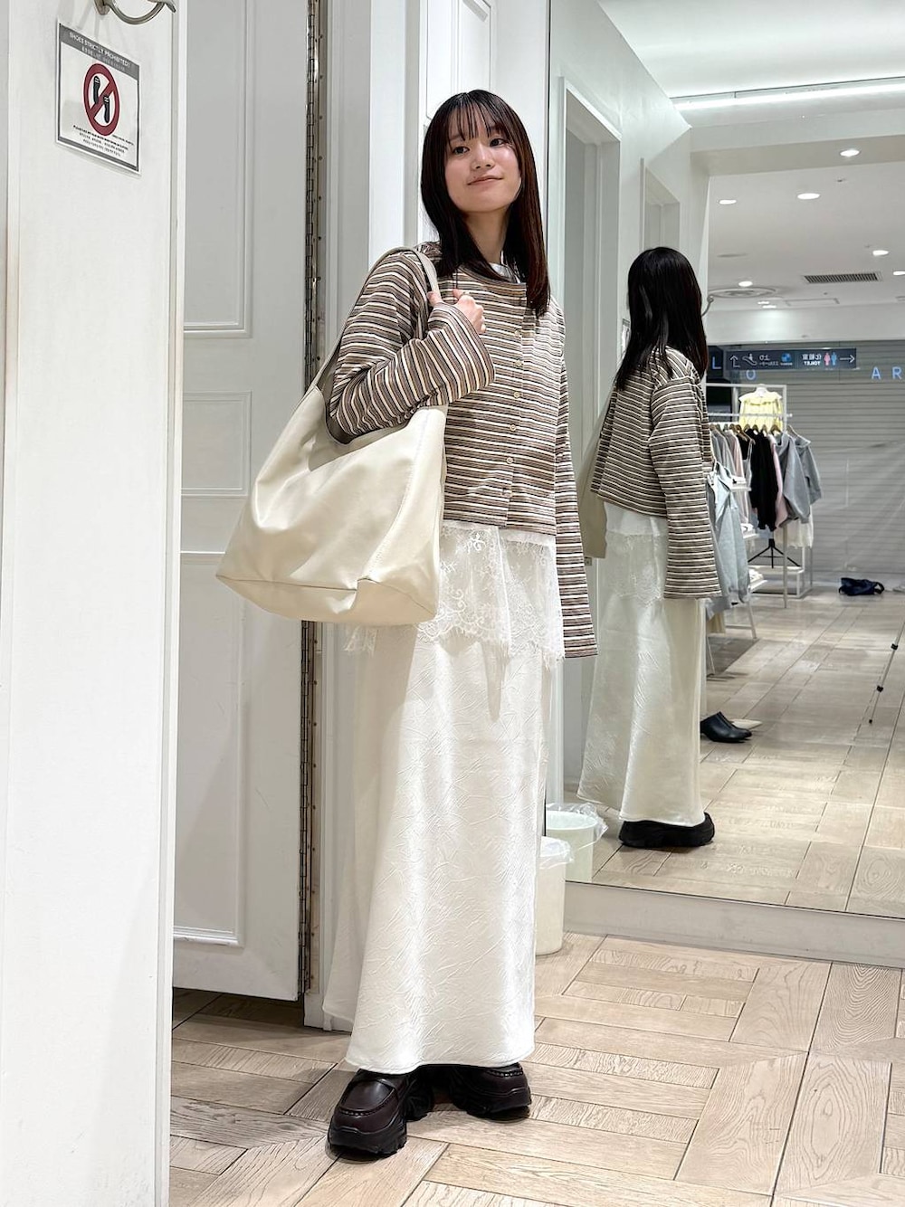 riidayoo(LOWRYS FARM 広島パルコ)のスカート「ストレッチサテンスカート 290120」を使ったコーディネート