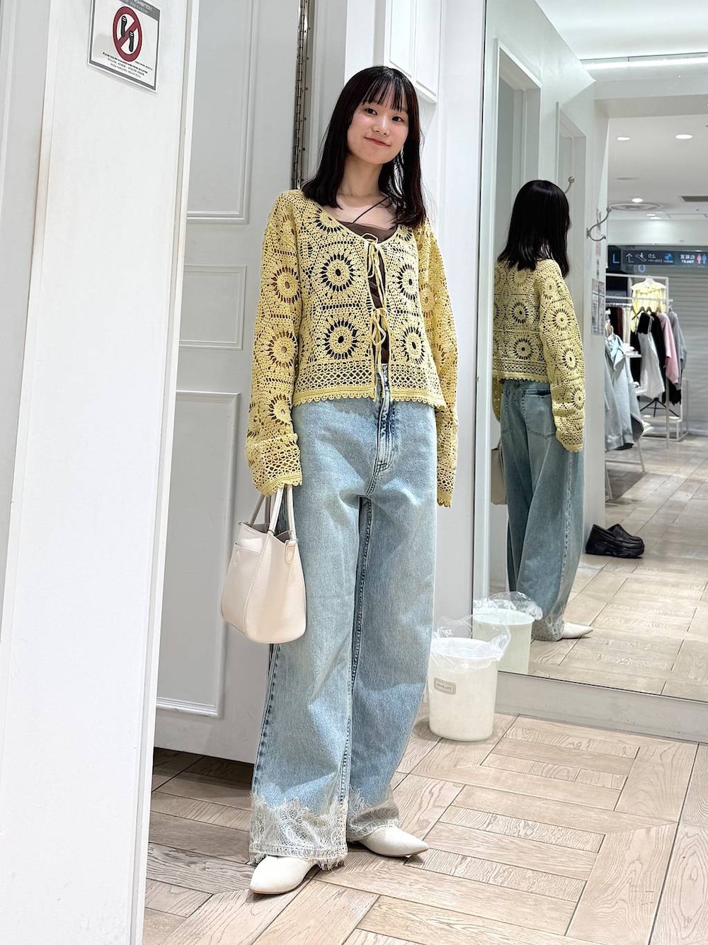 🏷️カーディガンコーデ カーディガンはクロシェ編みなので、インナー次第で雰囲気を変えていただけます✨
