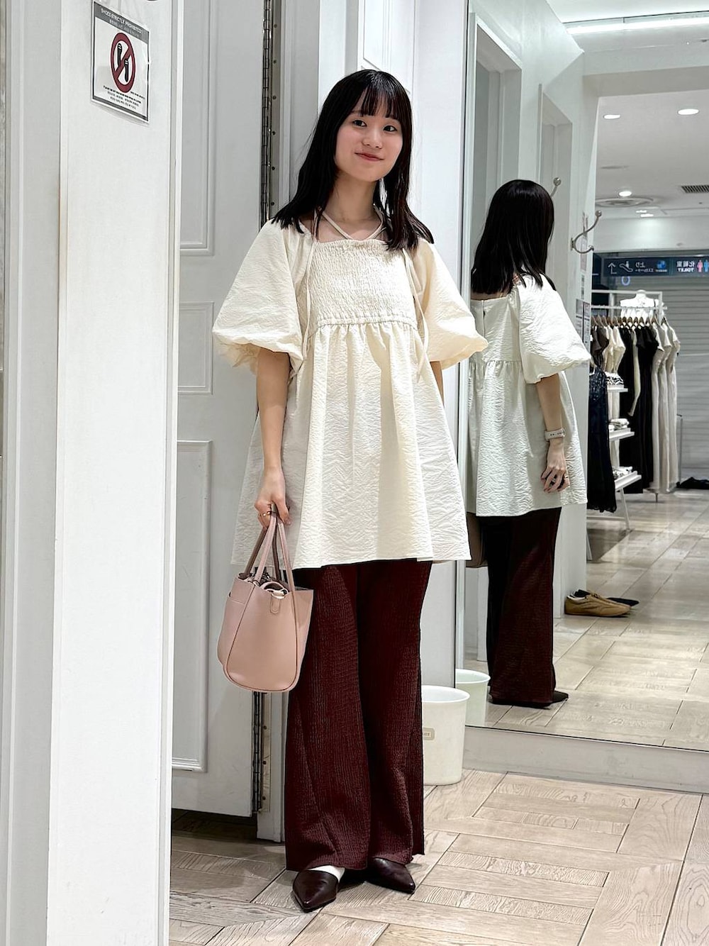 🏷️ブラウスコーデ ブラウスは適度なハリ感があって、きれいめでも着れます✨ フレアパンツとも相性が良いです!