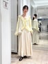 🏷️イエローコーデ ブラウスはお花の柄がポイントです♪ 適度な透け感なので夏まで着られそうです!