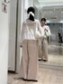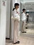 🏷️ブラウスコーデ アイボリーとピンクで春らしいコーデにしました♪ デニムは生地感がやわらかくて穿き心地抜群です!
