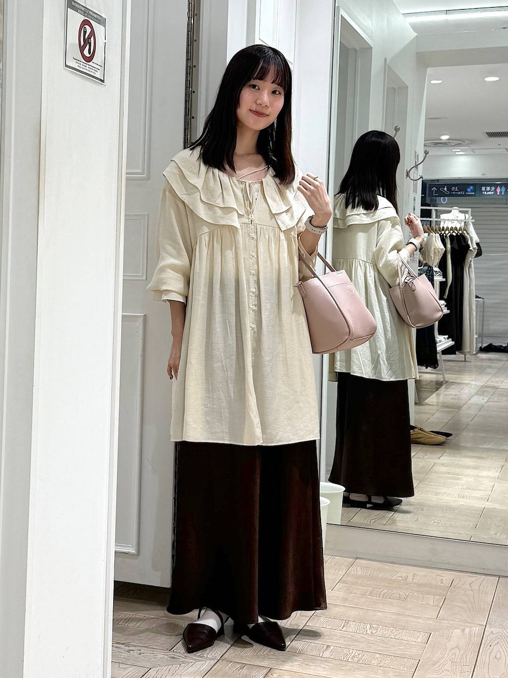 🏷️淡色コーデ チュニックはさらっとした素材感で、おしりまで隠れるので安心な丈感です✨