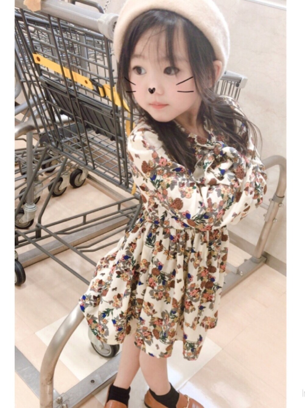 夕方出る時はまだ肌寒いので… レトロな感じが可愛かったワンピース👗 普段帽子慣れしている娘ですが、ベレー帽はのび太みたい… って少し本人抵抗があったみたいです((((;゚Д゚))))))) 私はとても好きなのですが…❤︎ ローファーは黒と茶色二色買いしたものです。笑