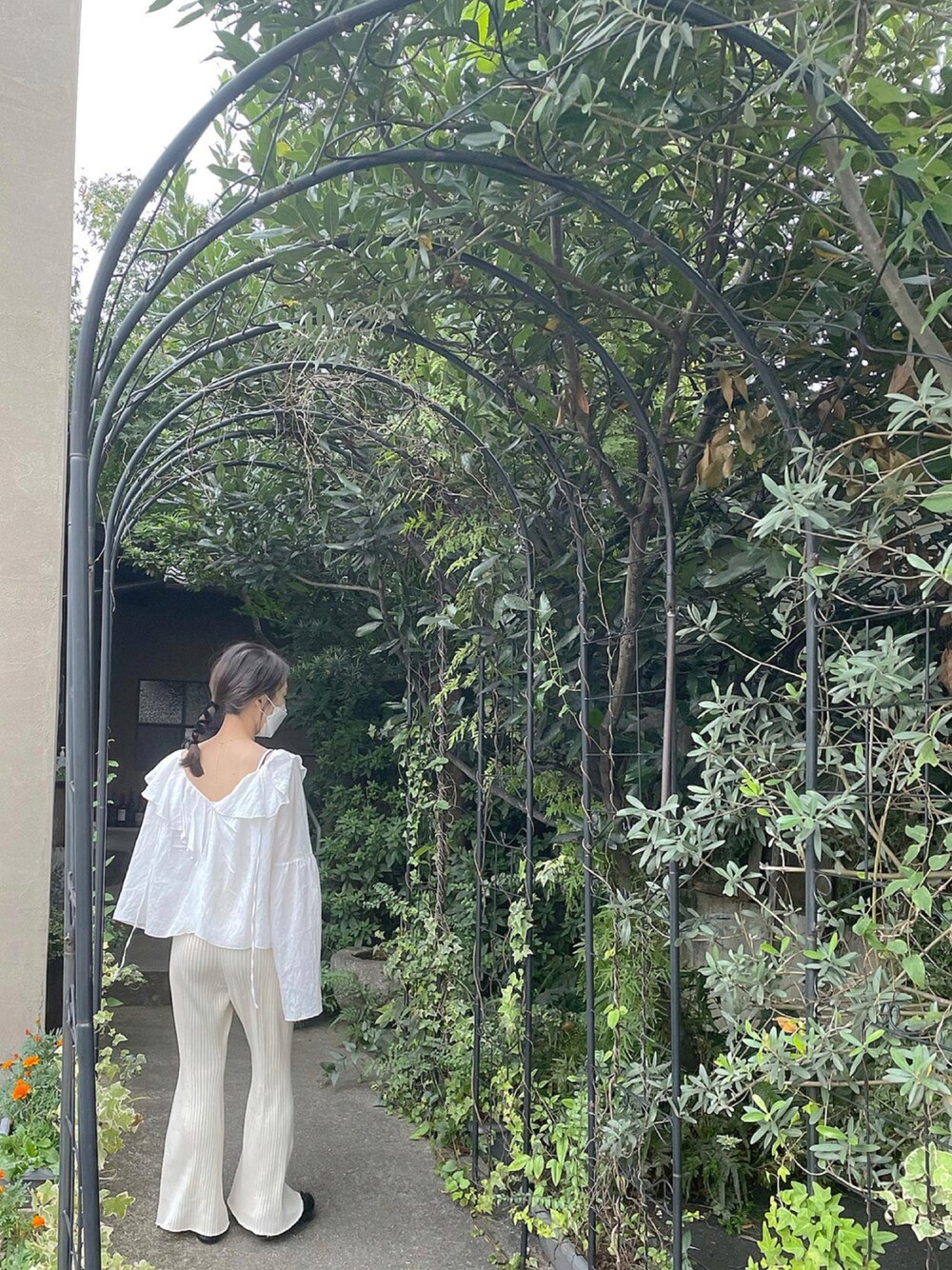 今日は専門の時からの友達と、お花を愛でて、それから少し贅沢ディナーをしました🌿 人柄の素敵な店員さんと美味しいご飯に癒されました☺️✨✨✨✨ mysticの白ブラウスは前後ろ反対にして背中を落として着るのがとってもかわいい!