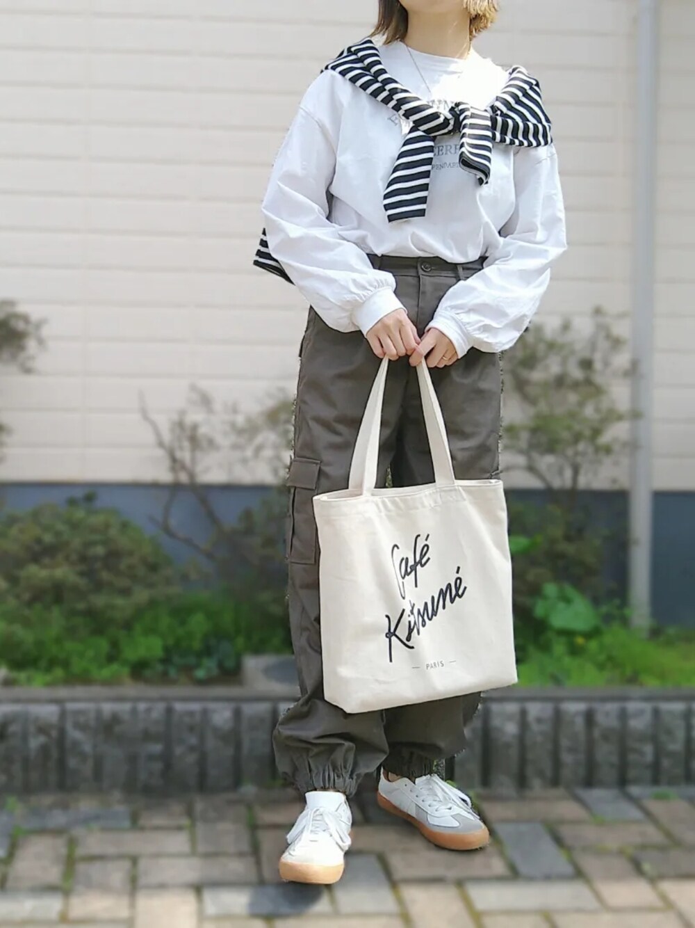 シンプルコーデにボーダーのカーディガンで アクセントをいれてみました。 GRLのカーゴパンツお気に入りです。 Instagram @maaar_643