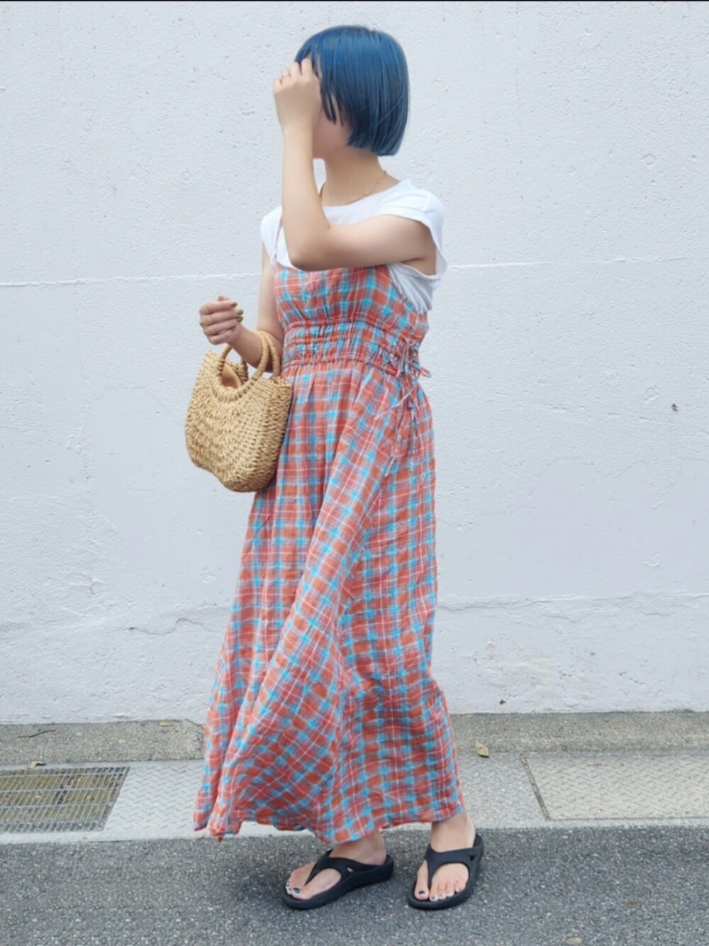 夏っぽいワンピースを主役に。 ウエスト部分かわいいです。 Instagram @_rimaaar_643