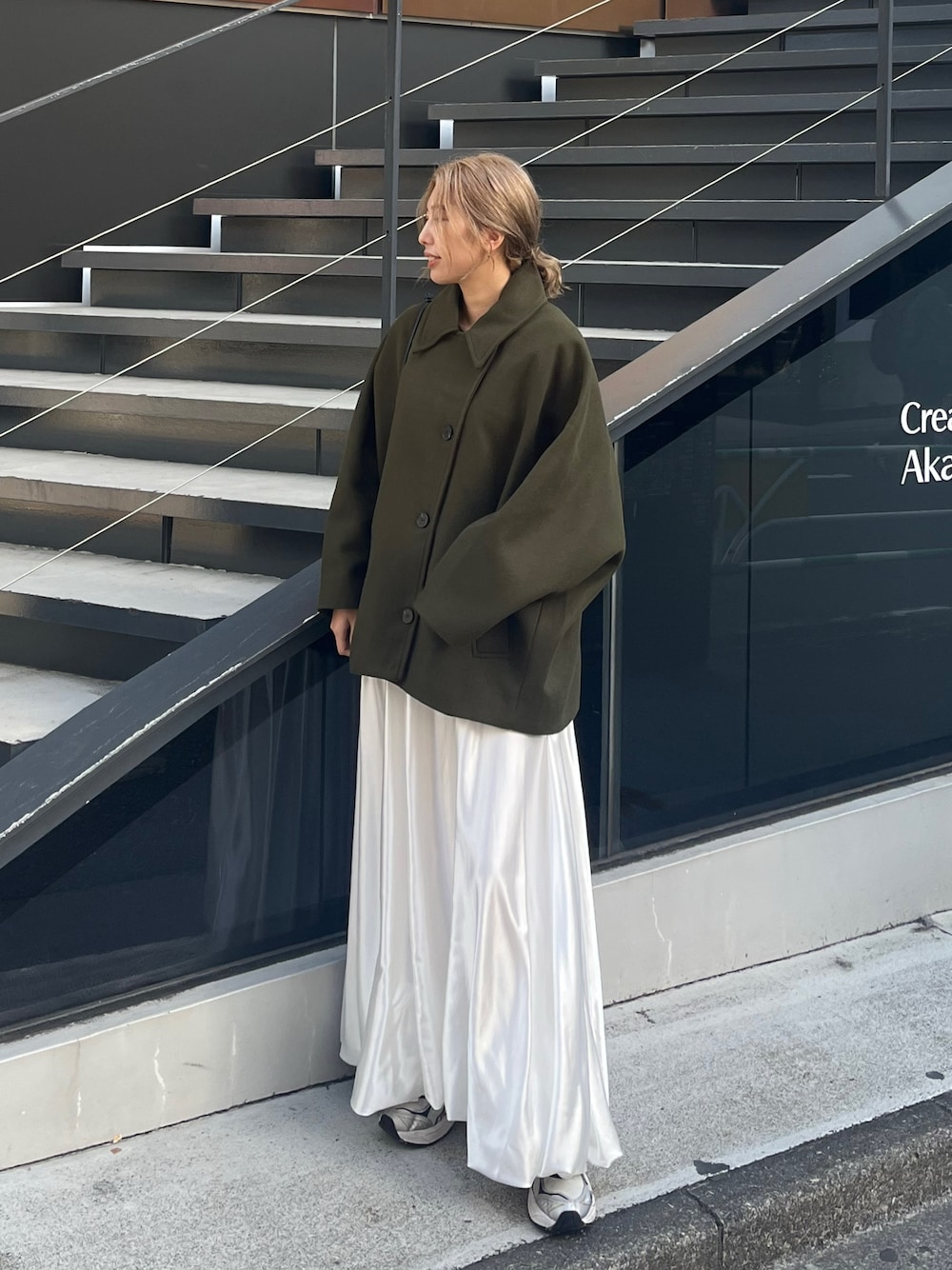 riho(perky room)のチェスターコート「ボリュームスリーブミドルコート」を使ったコーディネート