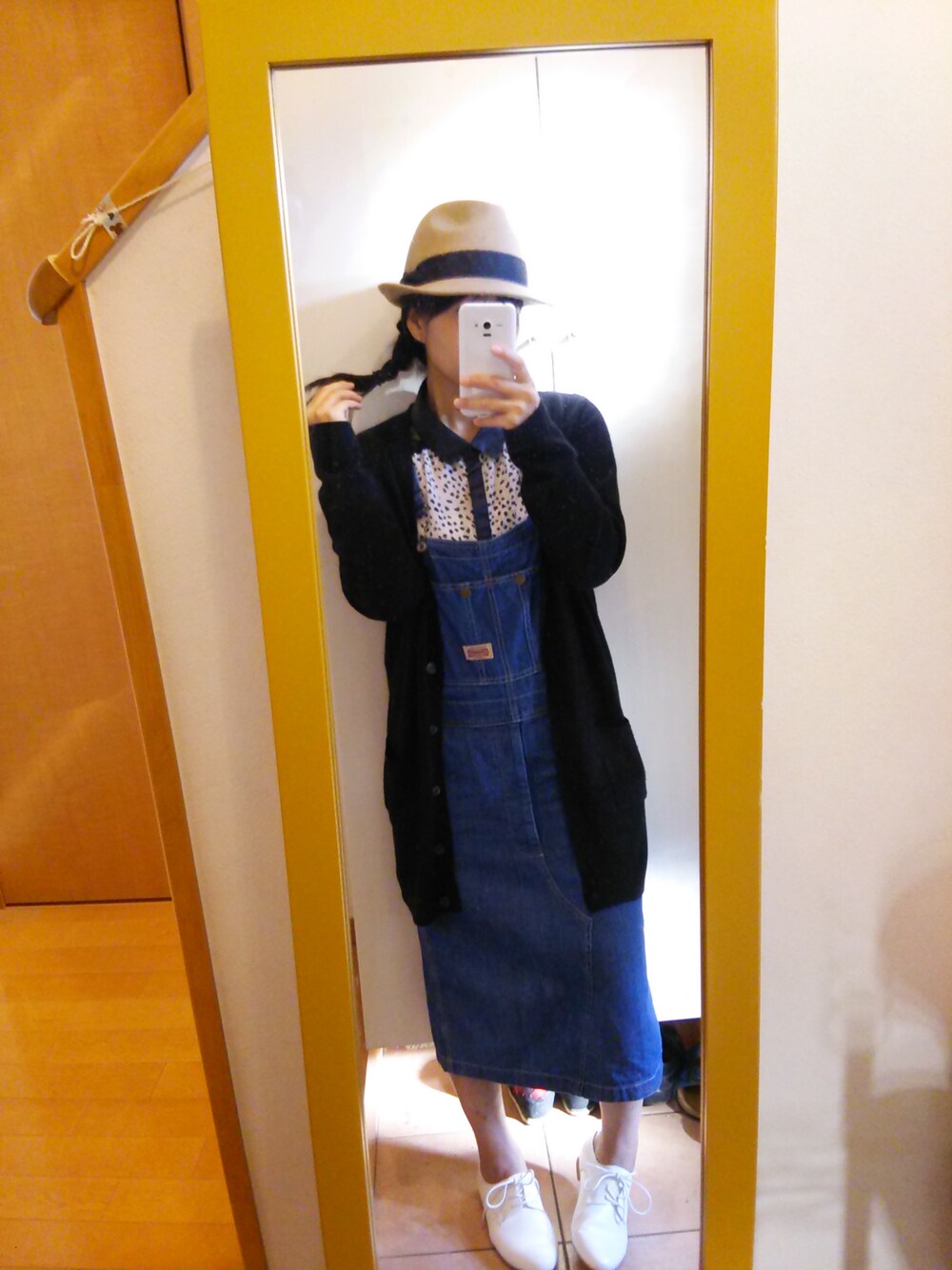 レオパード柄のとろみシャツをデニムのジャンパースカートでカジュアルダウン(*´∀`)