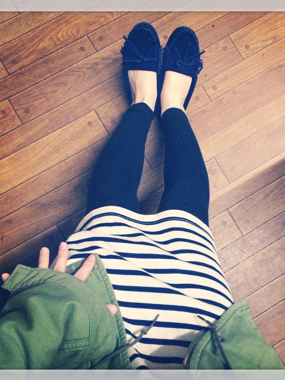 無印のワンピを 何年ぶりかに新調しました* これ、永遠長く着れます。。 足首出したいけど まだ寒いなぁ。。