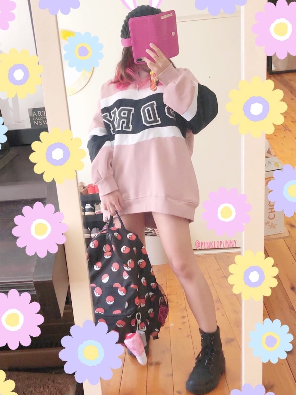 ピンク系のマウンテンパーカー、ブラック系のブーツを着用したレディースの春コーディネートの1枚目の写真