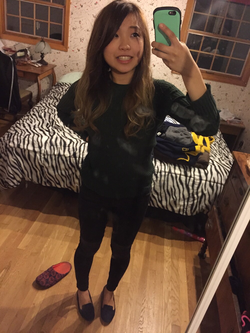 シンプルコーディネート😕🎉🎉 緑dawのため緑着ました。 この髪の巻き方ブームなう😧👍👍